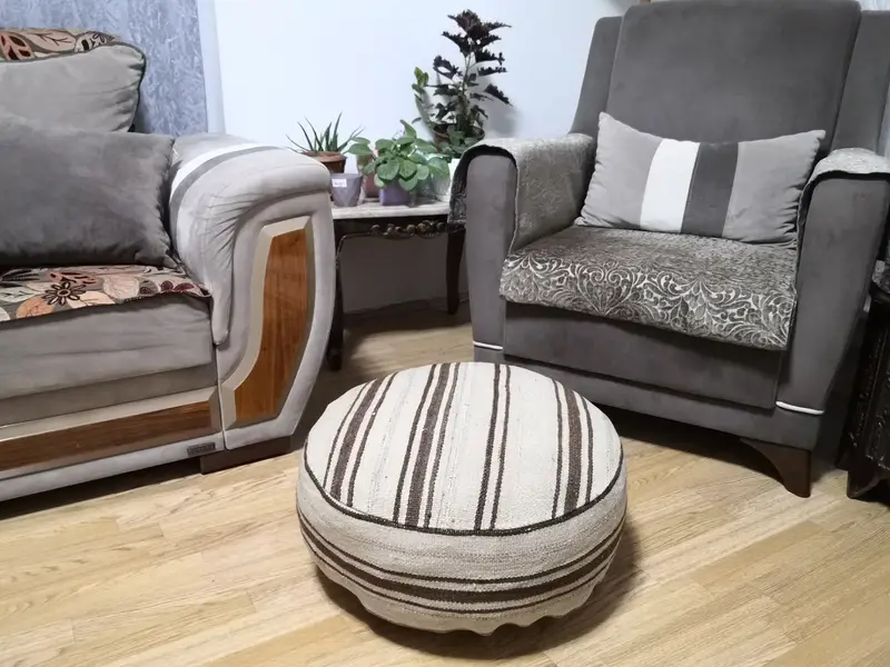 Almohada de lanzamiento de lana hecha a mano, almohada circular vintage a rayas