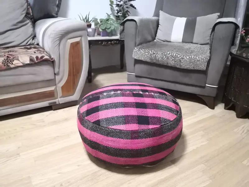 Almohada de lanzamiento de círculo vintage bordado, cojín de lana hecho a mano