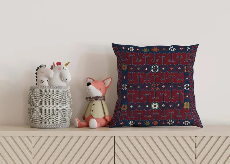 Almohada de lanzamiento del suroeste bordada en rojo y bronce, cojín de lino vintage