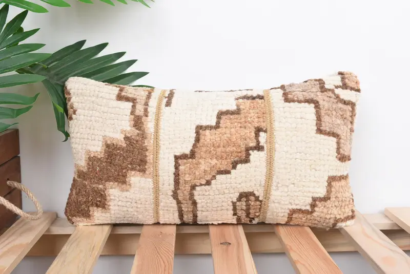 Almohada de lanzamiento de patchwork beige y marrón, cojín bordado vintage