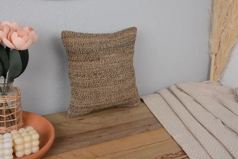 Almohada de lanzamiento hecha a mano en marrón y beige del suroeste, almohada de lino vintage