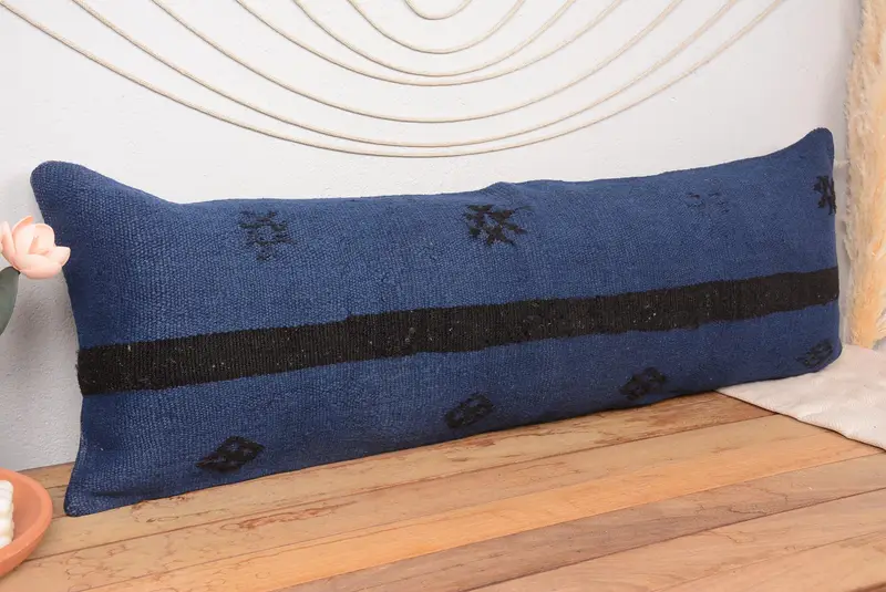 Almohada de lanzamiento púrpura bordada, cojín vintage hecho a mano de 16x48