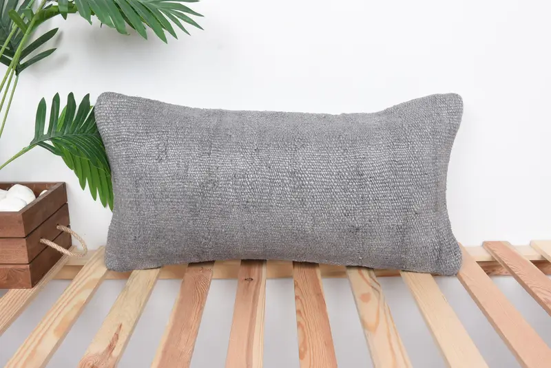 Almohada bordada del suroeste gris, almohada de tiro de lino hecha a mano