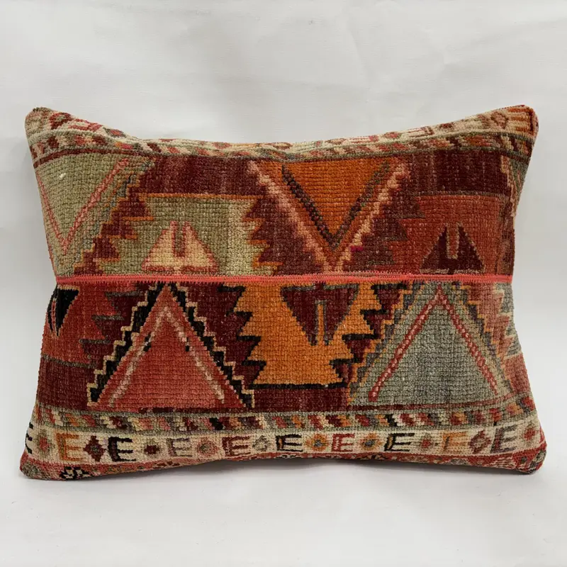 Almohada de lanzamiento de patchwork marrón y naranja hecha a mano, almohada bordada de 20x28
