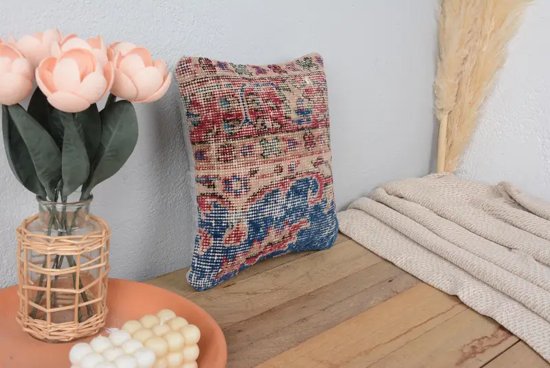 Almohada bordada floral roja, almohada de tiro vintage 12x12