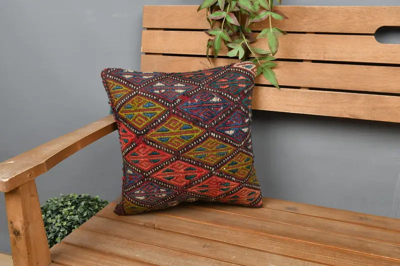 Almohada de lanzamiento verde y rojo bordada hecha a mano, cojín vintage