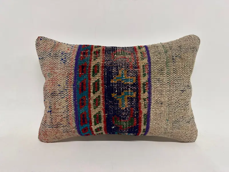 Almohada de tiro patchwork azul y rojo, cojín bordado hecho a mano