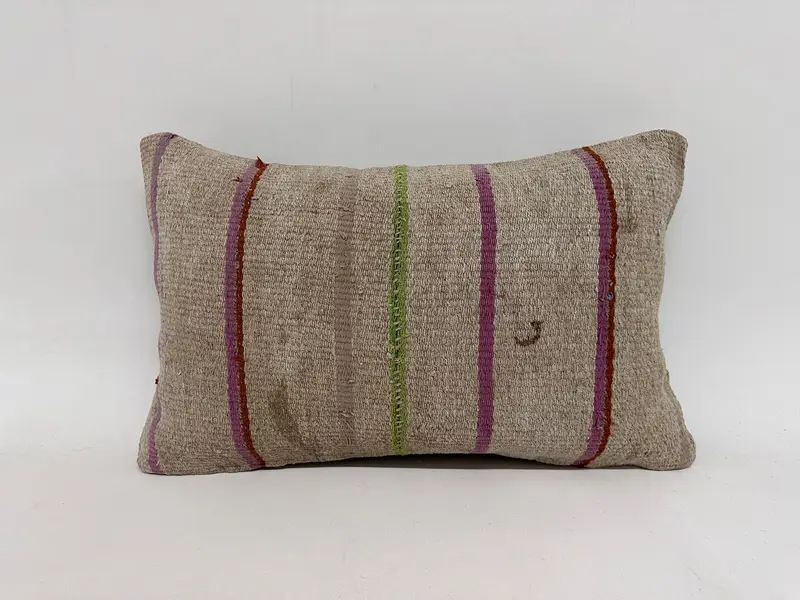 Almohada de tiro de lino a rayas beige y púrpura, almohada rectangular hecha a mano de 16x24