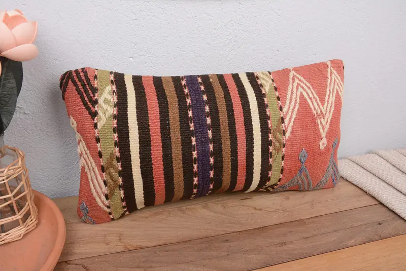 Almohada de tiro a rayas naranja y marrón, cojín hecho a mano de 10x20