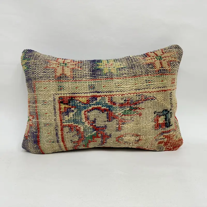 Almohada de lanzamiento bordada azul y roja, cojín floral vintage