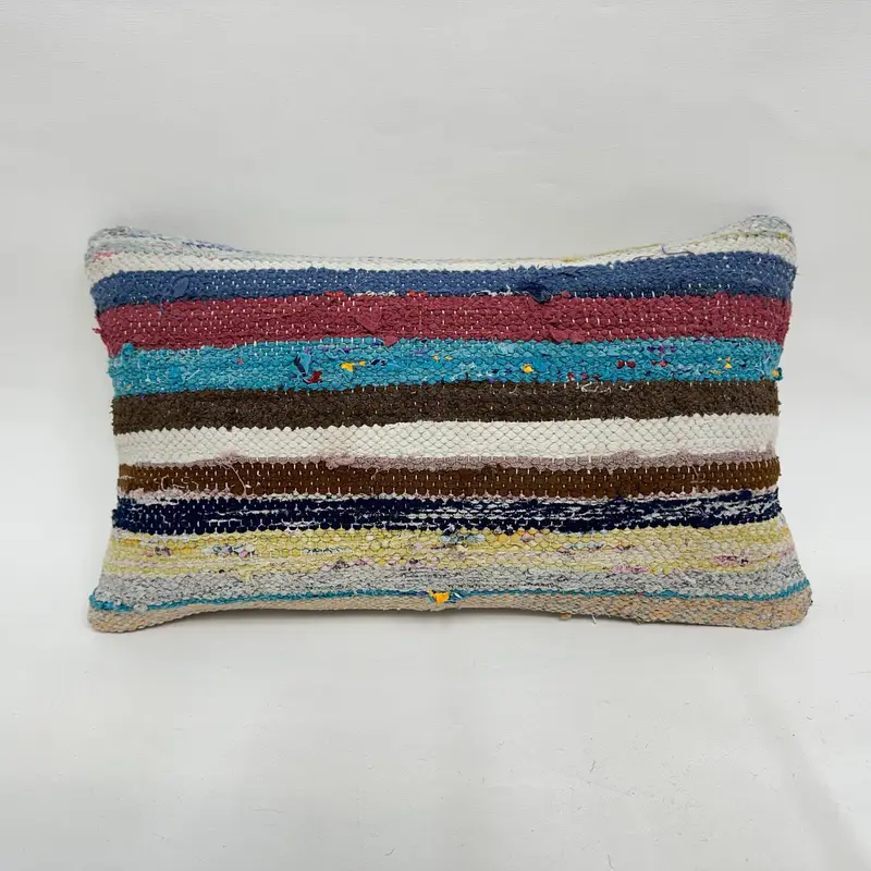 Almohada de tiro de rayas azules y blancas, almohada de lino hecha a mano de 12x20