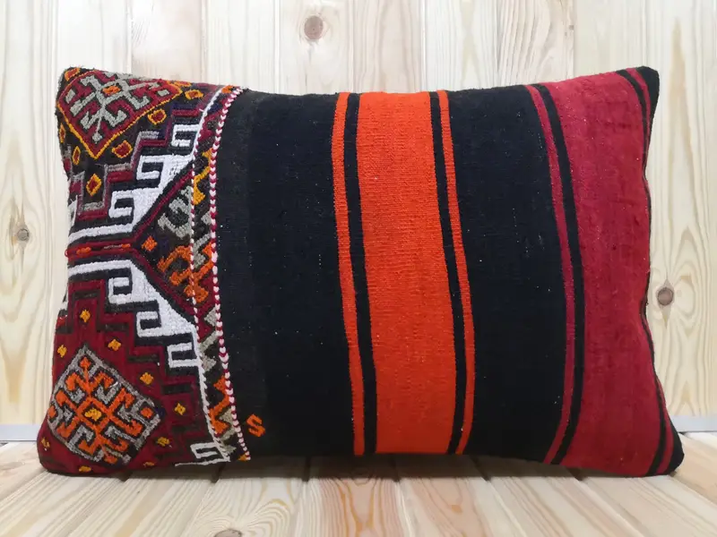 Almohada de tiro a rayas hecha a mano, cojín rectangular vintage