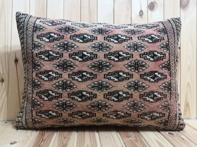 Patrón geométrico, almohada de lana con cierre de cremallera.