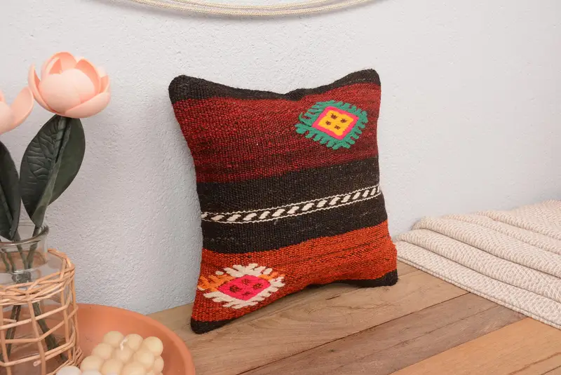 Almohada de lanzamiento del suroeste hecha a mano, almohada bordada vintage de 12x12