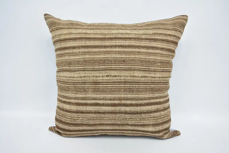Almohada de tiro a rayas beige y marrón, cojín bordado hecho a mano