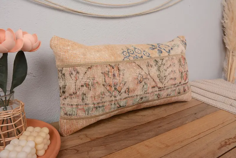Almohada de tiro de patchwork naranja y verde, cojín bordado hecho a mano