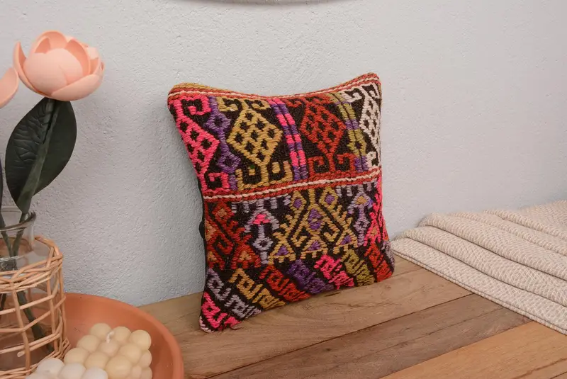 Almohada de tiro geométrica rosa y púrpura, cojín bordado vintage