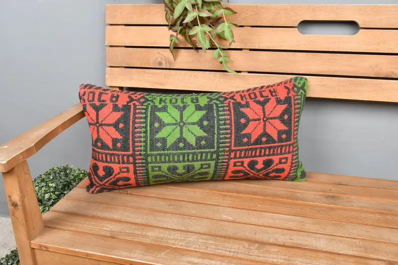 Almohada de lanzamiento geométrica verde y gris rectangular, cojín vintage bordado