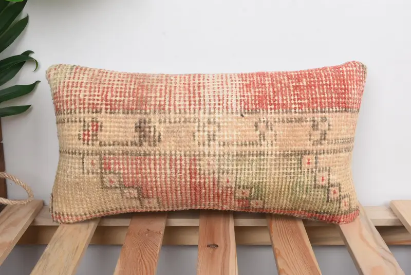 Almohada de tiro bordada del suroeste rojo, almohada de lino hecha a mano vintage