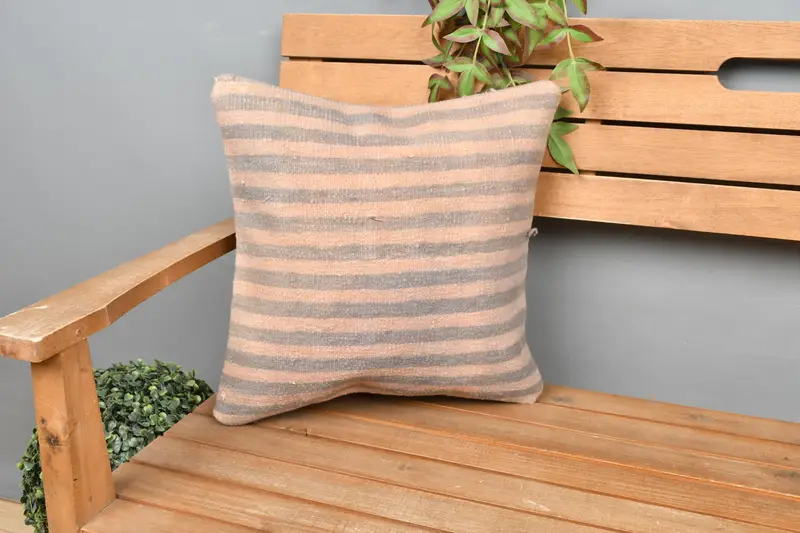 Almohada de rayas rosa y gris bordada, almohada de tiro hecha a mano de 16x16