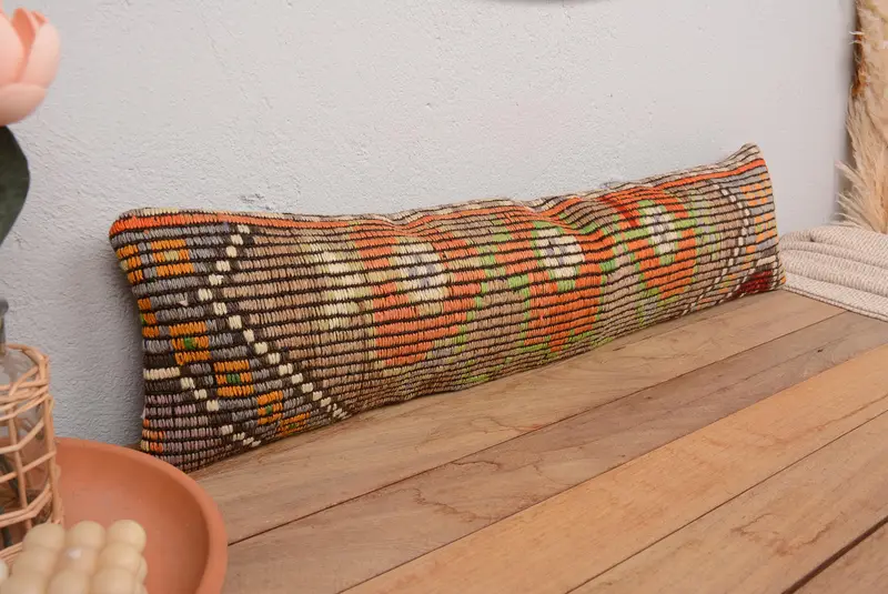 Almohada de tiro del suroeste naranja y verde, cojín bordado hecho a mano