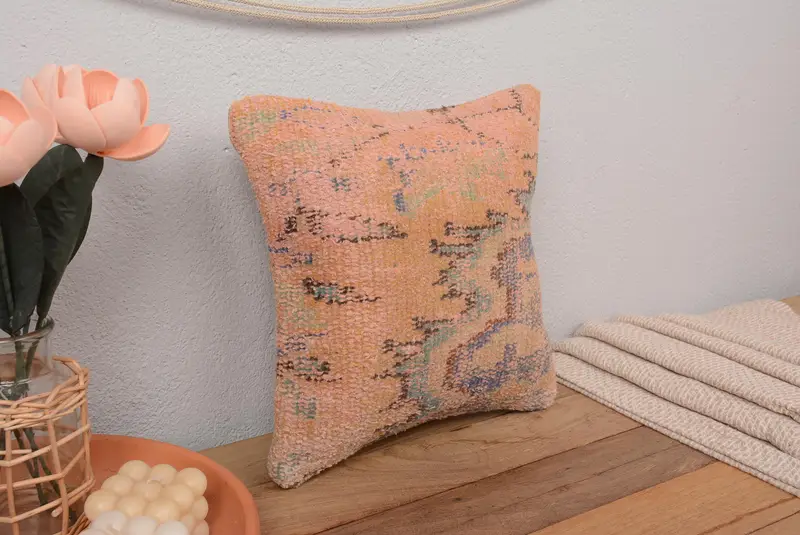 Almohada de tiro bordada floral naranja y verde, almohada vintage hecha a mano