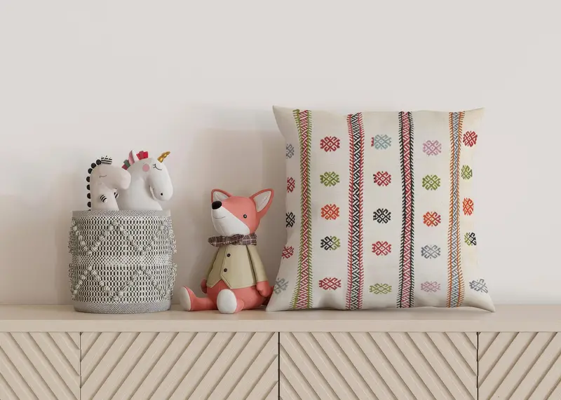 Almohada de refuerzo del suroeste bordada hecha a mano, almohada de lanzamiento blanco vintage