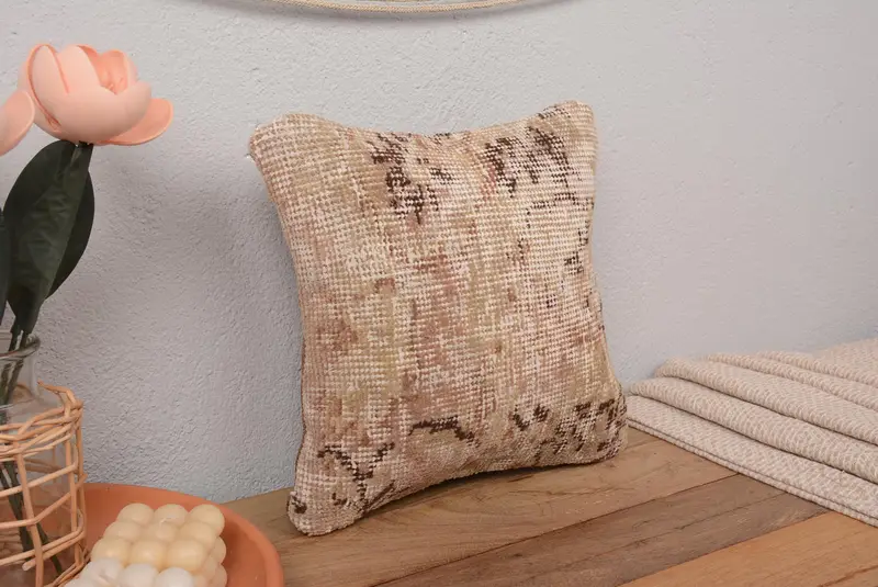 Almohada bordada del suroeste beige y marrón, almohada de tiro vintage 12x12