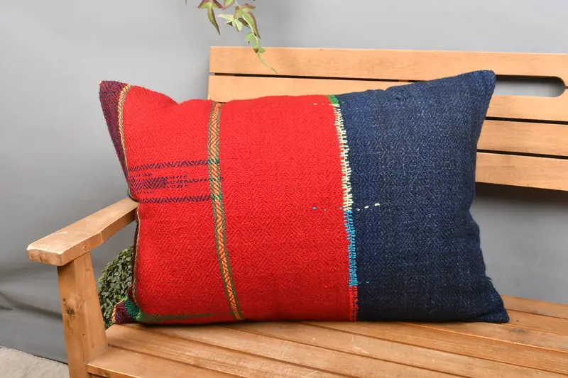 Almohada de tiro a rayas rojas y bronce, cojín bordado de 20x28