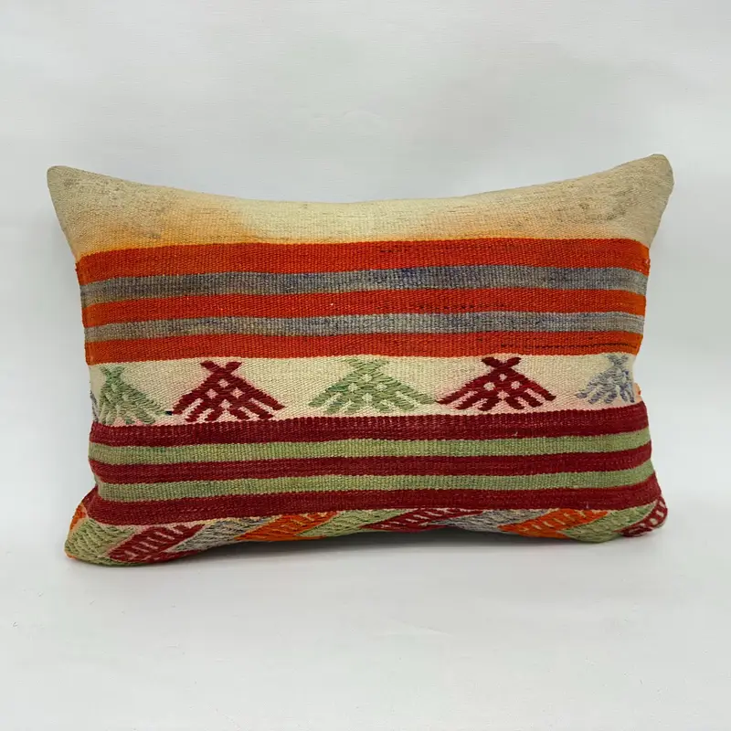 Almohada de tiro a rayas rojas y beige, cojín bordado hecho a mano