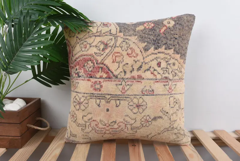 Almohada Kilim del suroeste beige con detalles en bronce, almohada de lanzamiento vintage