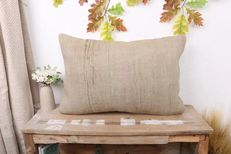 Almohada bordada del suroeste beige, almohada de tiro hecha a mano de 16x24