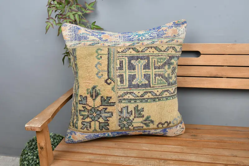 Almohada bordada verde y naranja hecha a mano, almohada de tiro vintage