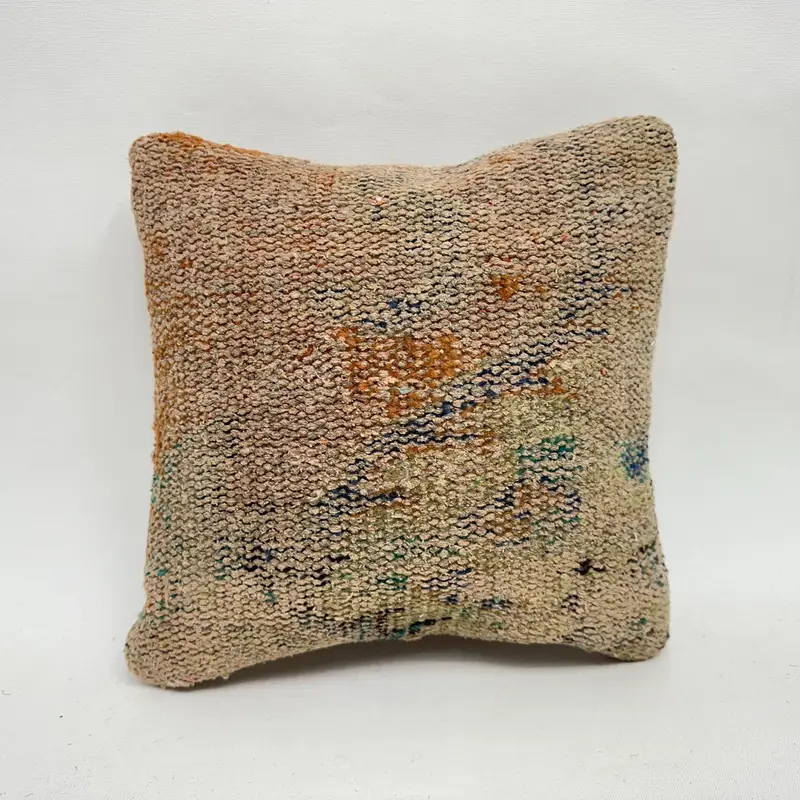Almohada de tiro Kilim del suroeste beige, cojín bordado 12x12