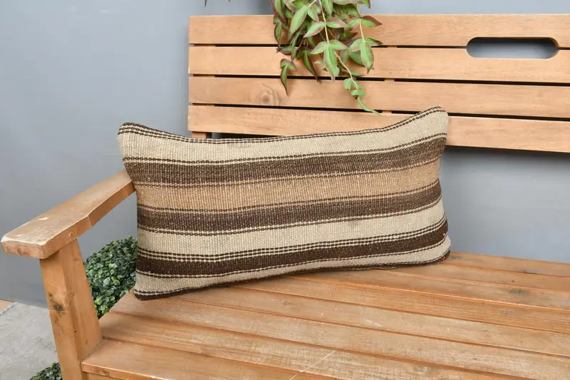 Almohada de rayas marrón y beige bordada, almohada de lanzamiento versátil de 12x24