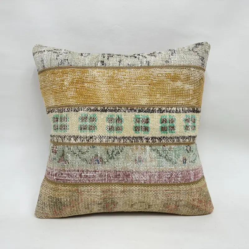 Almohada de lanzamiento de patchwork beige y verde, cojín bordado 24x24