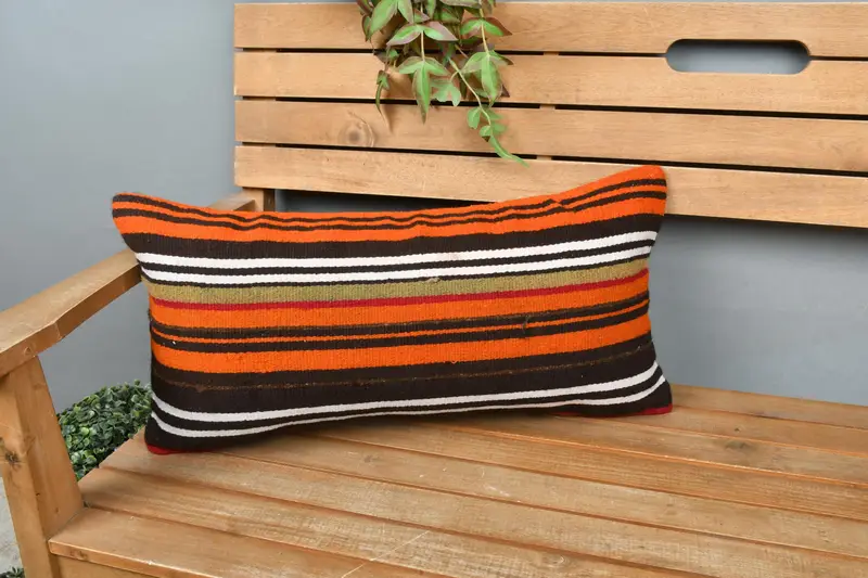 Almohada de rayas hecha a mano con almohada de tiro versátil blanca y naranja