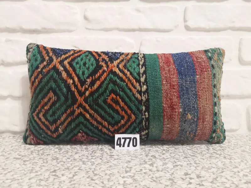 Almohada de lanzamiento de lana hecha a mano, almohada vintage geométrica de 8x16 pulgadas