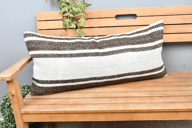 Almohada de tiro de lino a rayas, cojín bordado 16x36