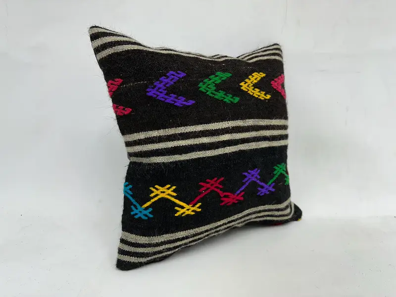 Almohada de lanzamiento geométrico marrón y púrpura, cojín bordado vintage