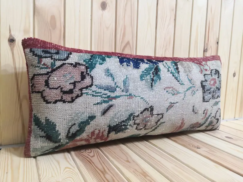 Almohada de lanzamiento rectangular hecha a mano, almohada de lanzamiento de diseño floral vintage