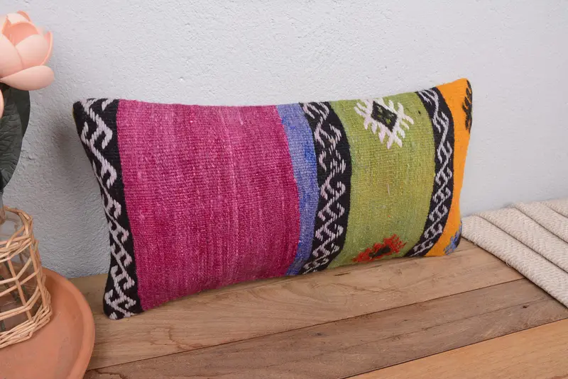Almohada de lanzamiento bordada hecha a mano, cojín púrpura vintage con rayas verdes