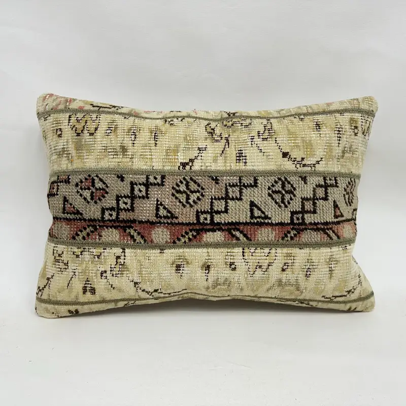 Almohada de lanzamiento de patchwork beige y marrón, cojín vintage hecho a mano