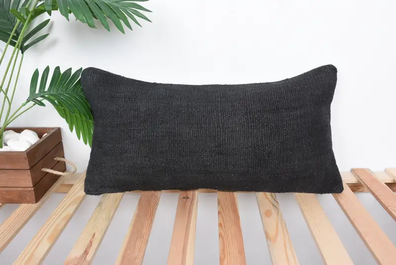 Almohada bordada del suroeste negro, almohada de tiro hecha a mano de 12x24