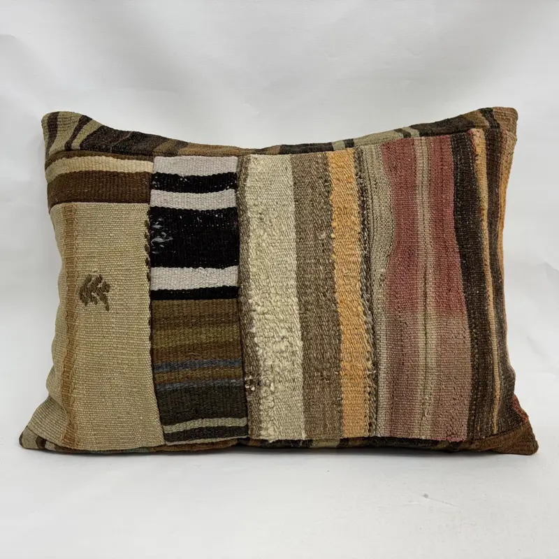 Almohada de lanzamiento de patchwork beige y marrón, almohada de decoración vintage de 20x28