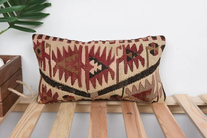 Almohada de tiro bordada roja, cojín geométrico vintage con cremallera