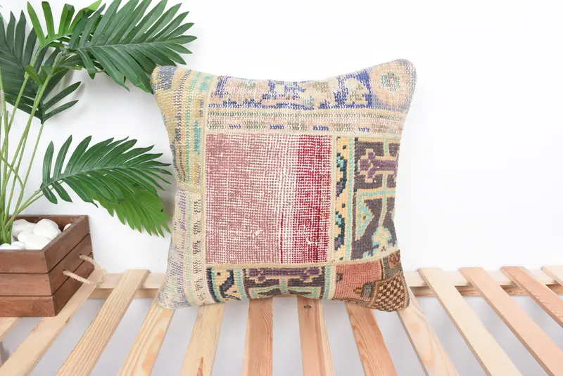 Almohada de lanzamiento de patchwork rojo y verde, almohada vintage bordada de 18x18