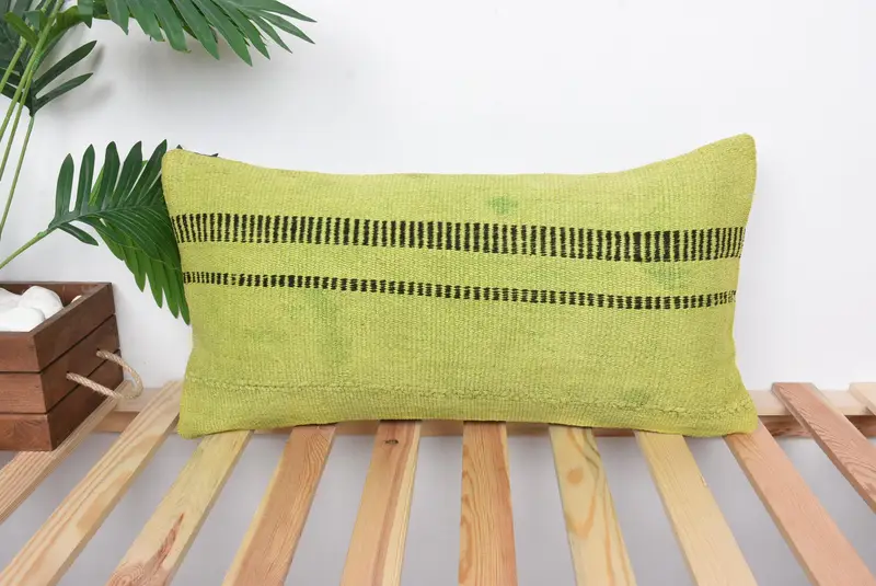 Almohada verde y marrón del suroeste hecha a mano, almohada de lanzamiento vintage de 12x24