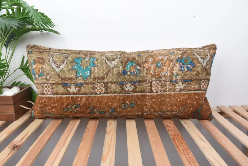 Almohada de tiro del suroeste marrón, cojín bordado vintage