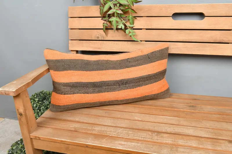 Almohada de rayas marrón y naranja, almohada de tiro bordada 12x24